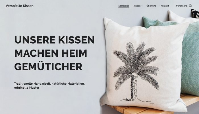 Verkaufen Sie Ihre selbstgemachten Kissen online. Diese Vorlage wurde speziell für den Verkauf von gemütlichen Kissen und einzigartiger Deko gemacht. Eine Produktseite mit vielen Fotos hilft Ihnen beim Verkauf. Kunden finden somit im Nu die besten Artikel für ihr zu Hause.