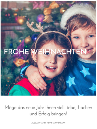 Machen Sie etwas Originelles! Anstelle einer gewöhnlichen Grußkarte nutzen Sie lieber eine festliche Webseite aus einer Seite. Fügen Sie Ihr eigens Bild ein, ein paar nette Worte und teilen Sie Ihre Vorfreude auf die Feiertage mit Ihren Liebsten.